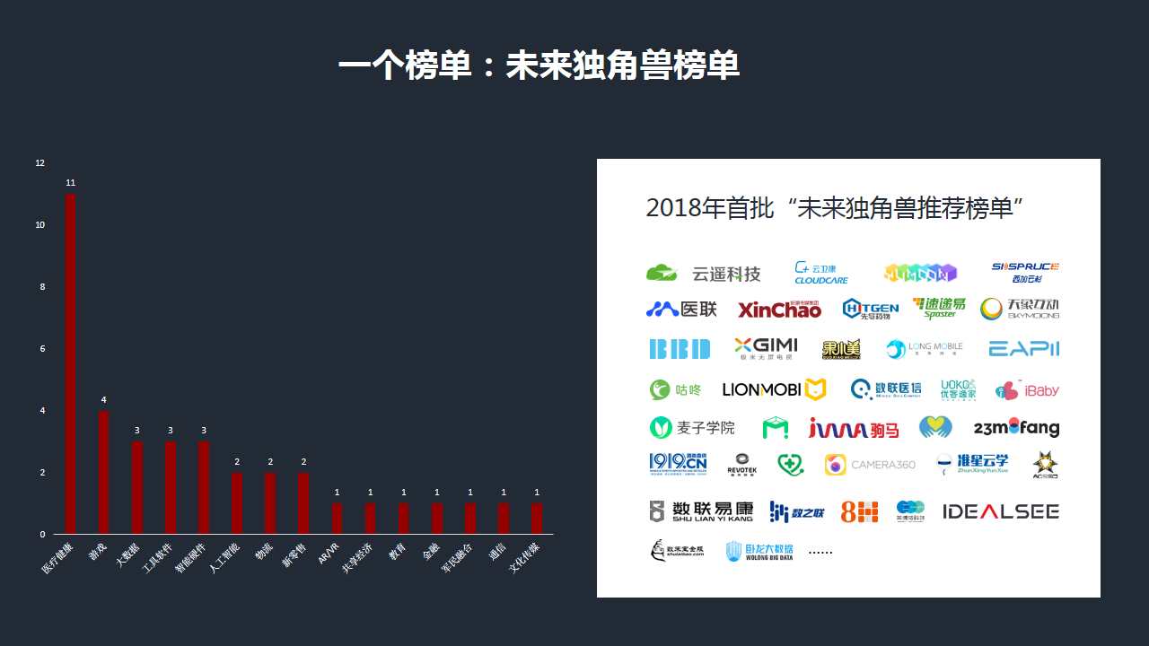 据悉,经过多轮推荐、征集和评审,共有三十七家企业脱颖而出,成为首批上榜的未来独角兽未来推荐企业。这些准独角兽企业主要分布在人工智能、大数据、新金融、新零售、医疗健康、新媒体等十五个领域,涉及三十多个细分行业。大会现场通过视频短片发布了评审结果。